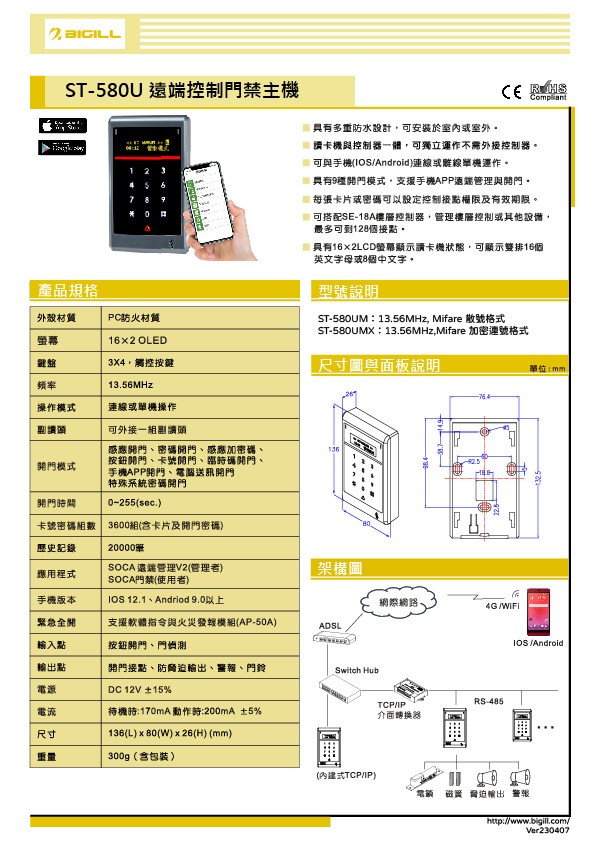 ST-580U 遠端管理門禁主機