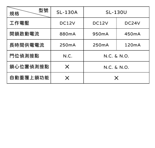 ▪ 內含門開啟或關閉狀態偵測輸出接點(250mA:N.C. / N.O.)。