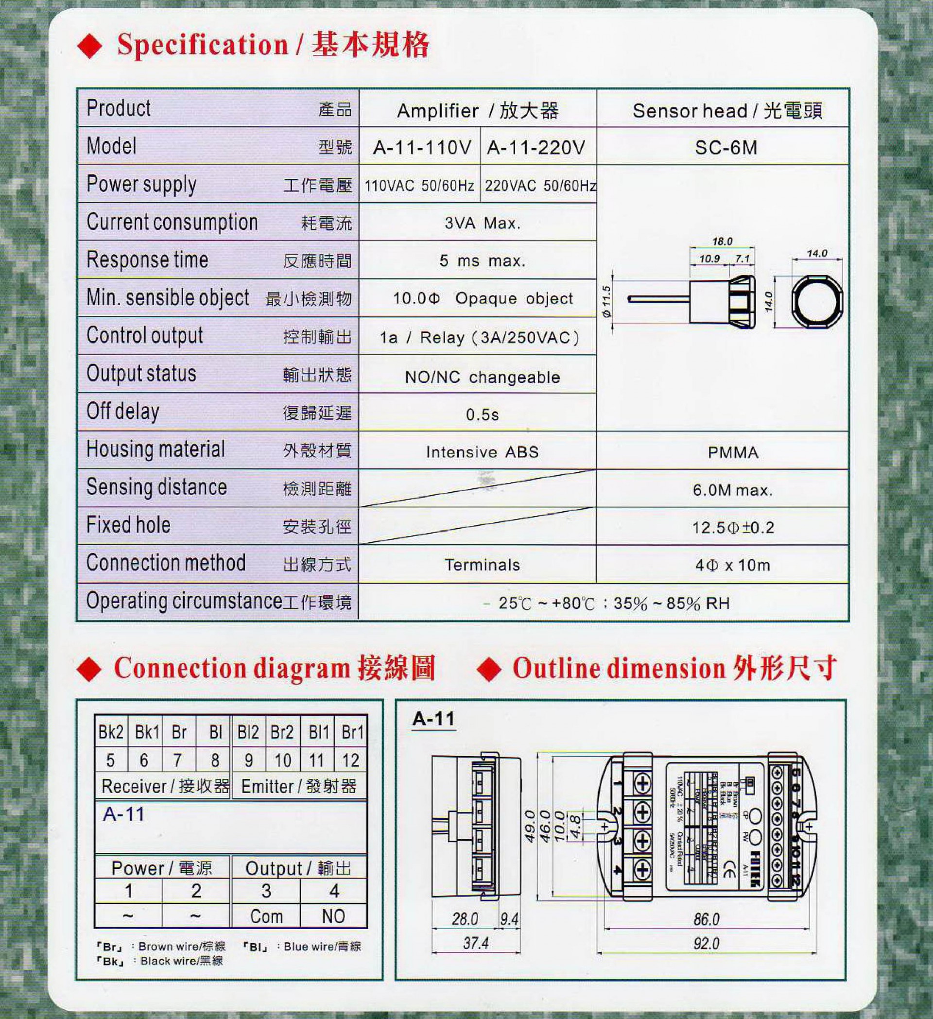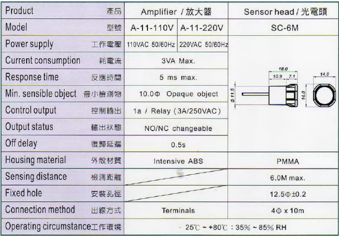 A-11放大器(AC110/220V) + SC-6M光電頭